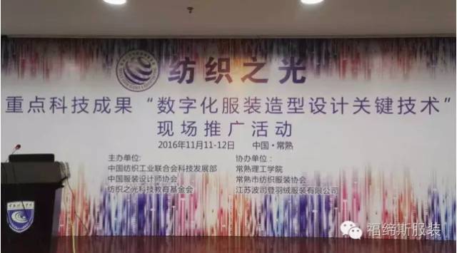 In order to promote the wide application of scientific and technological achievements in the textile industry in the field of fashion design and garment pattern technology, help fashion designers to innovate more advanced, more diversified and more scientific, accelerate the transformation and upgrading of enterprises, and enhance the core competitiveness, the "number" co sponsored by the science and Technology Development Department of China Textile Industry Federation, China Fashion Designers Association and textile light technology education foundation On November 11, the promotion activity of key scientific and technological achievements of "key technology of zigzag fashion design" was held in Changshu, Jiangsu Province.
